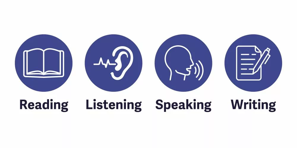 The course focuses on grammar, vocabulary, speaking, listening, reading, and writing, ensuring complete language development with practical use.